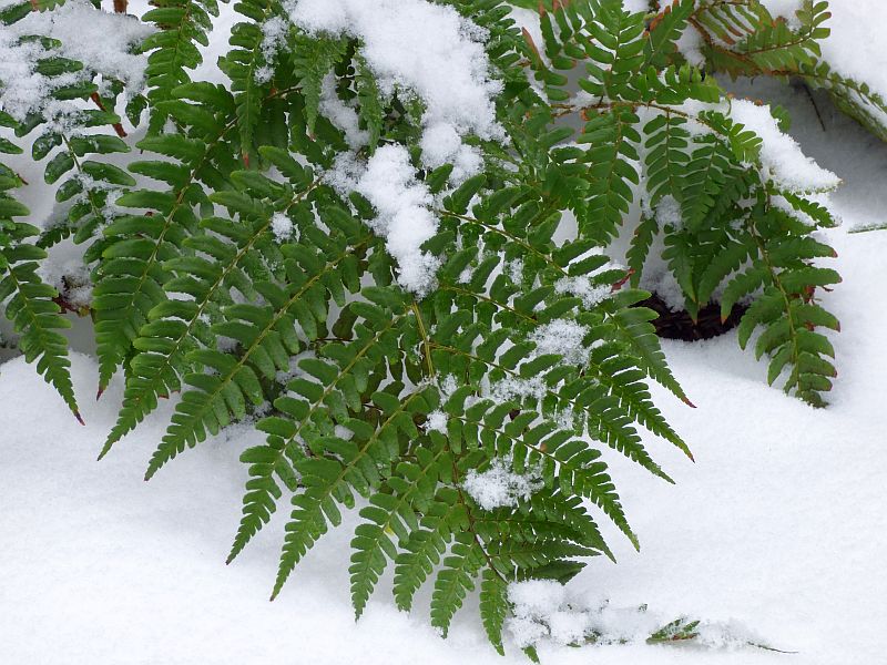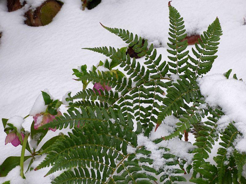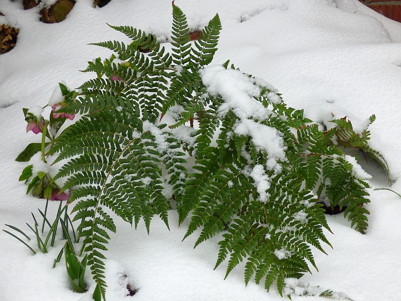 Dryopteris championii to na ten moment najładniejsza z moich paproci... niepołamana, nieprzypalona i na tyle ażurowa, że... nie przysypał jej primaaprilisowy śnieg :silly: