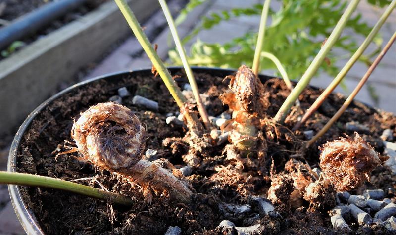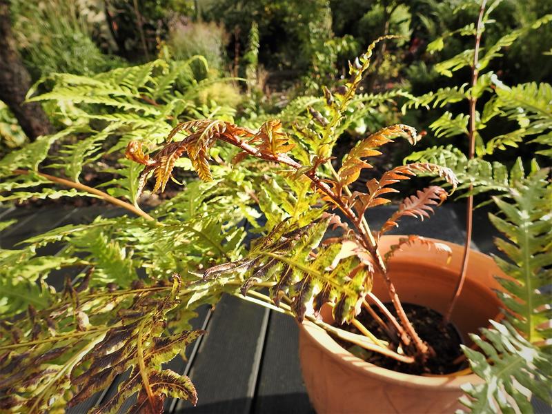 Woodwardia unigemmata ma jednak to do siebie, że produkuje młode liście niemal cały sezon, więc oryginalnym kolorem paproci możemy cieszyć się aż do jesieni.