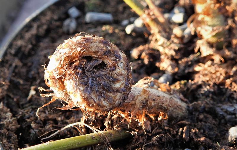 Woodwardia unigemmata rośnie w moim ogrodzie, zabezpieczana tak, jak dziesiątki innych paproci. Kilka iglastych gałęzi załatwia sprawę.