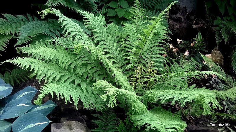 Moja Athyrium filix - femina 'Plumosum - Cristatum' rośnie na stanowisku bardzo wilgotnym i zasobnym, w cieniu młodej sosny. To piękna, szeroko rozkładająca się odmiana....może nawet trochę zbyt rozkładająca się. Obecnie, po ustąpieniu upałów, zaczęła bardzo dynamicznie wypuszczać nowe, młode frondy.