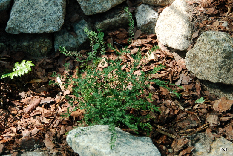 Adiantum pedatum Laciniatum ( wg Martina Rickarda Adiantum aleuticum), przyzwoicie rozpoczęło kolejny sezon. Od kilku dni rośnie na lepszym stanowisku: a nowym stoku paprociowym pod murem. Ma tam półcień, zasobną glebę i dostatek wilgoci, liczę więc na dynamiczny rozwój.