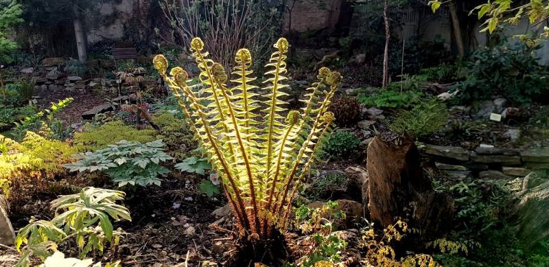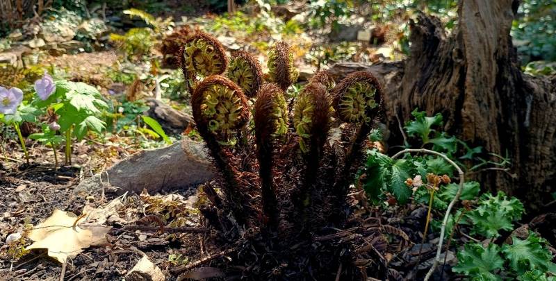 Młodziak, który rośnie jeszcze w doniczce na osłoniętym stanowisku ma się dobrze. Natomiast nerecznica grubokłaczowa wysadzona jesienią do gruntu będzie startować od nowa po ostatnich przymrozkach.