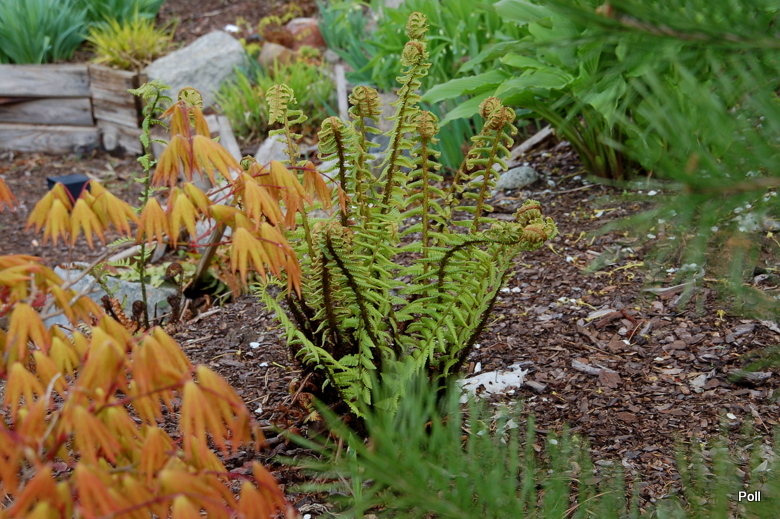 Niestety, Dryopteris crassirhizoma z powyższego zdjęcia podmarzł - pastorały stanęły w rozwoju a te, które się rozwinęły, są pokracznie powykrzywiane.