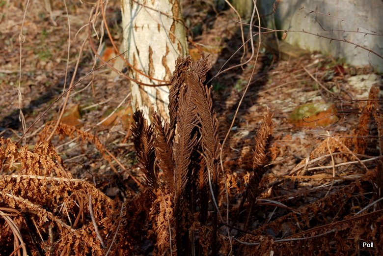 Ubiegłoroczne, zbrązowiałe sporofile pióropusznika - zdjęcie sprzed kilku dni