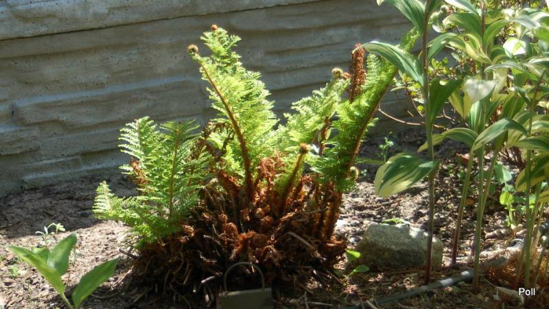 Polystichum setiferum 'Hamlet', pierwsze liście nie rozwineły sie do końca z niejasnych dla mnie przyczyn.Ale im bliżej końca lata wypuszcza coraz ładniejsze. ;)