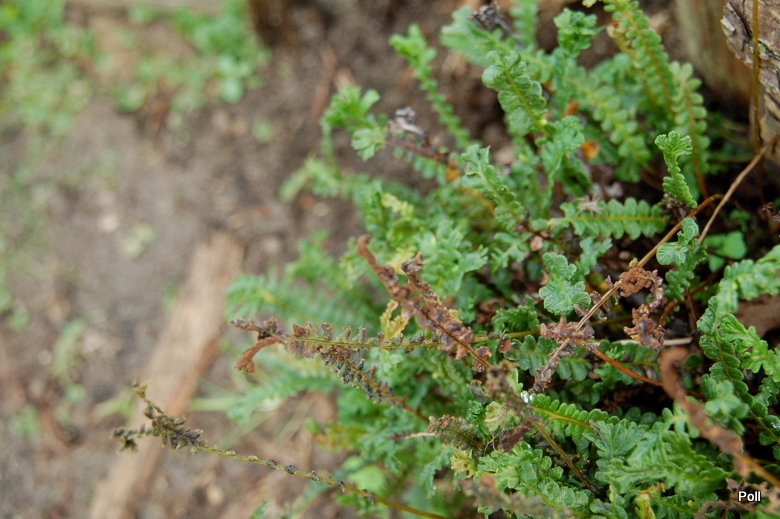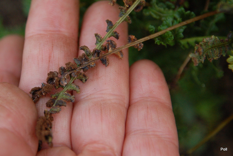 Rozwijające się, 'szczuplejsze' i bardziej kolorowe sporofile na tle ciemniejszych, zielonych i błyszczących trotofili (zdjęcie z początku czerwca)
