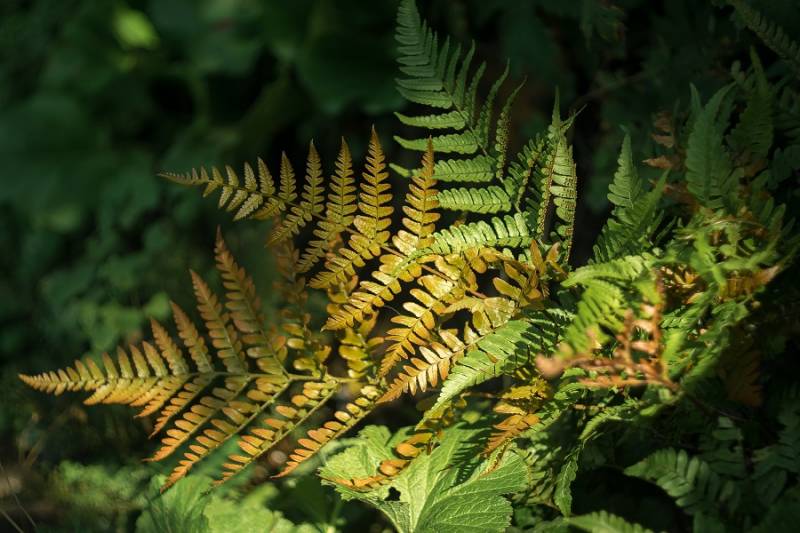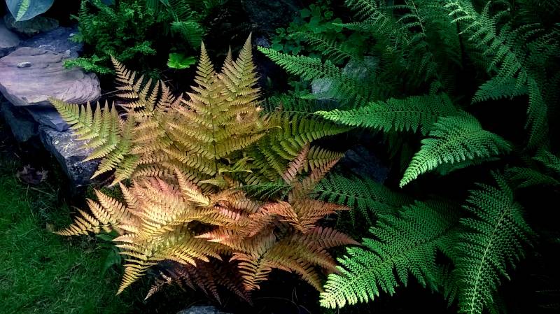 Nerecznice czerwonozawijkowe, to jedne z najlepiej widocznych paproci w ogrodzie. Z daleka widać pomarańczowe plamy w miejscach, gdzie rosną.