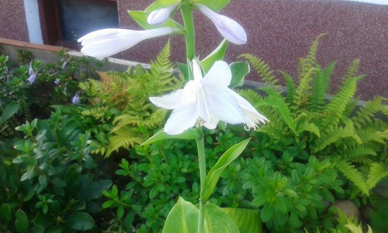 W nieco mocniejszym cieniu, nad dziurką wodną (z hostą Devon Discovery)