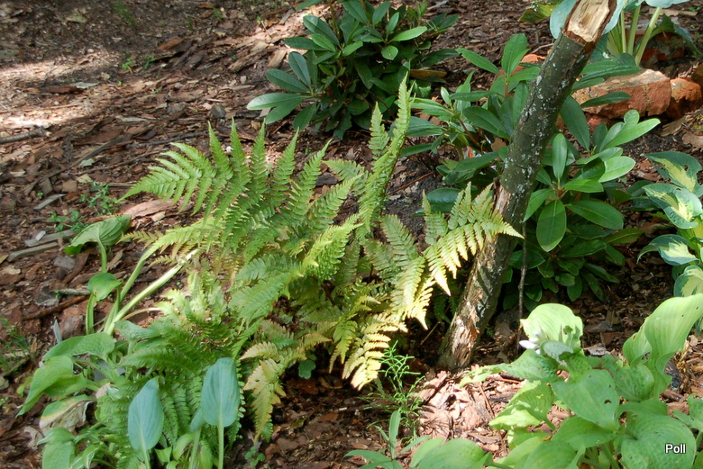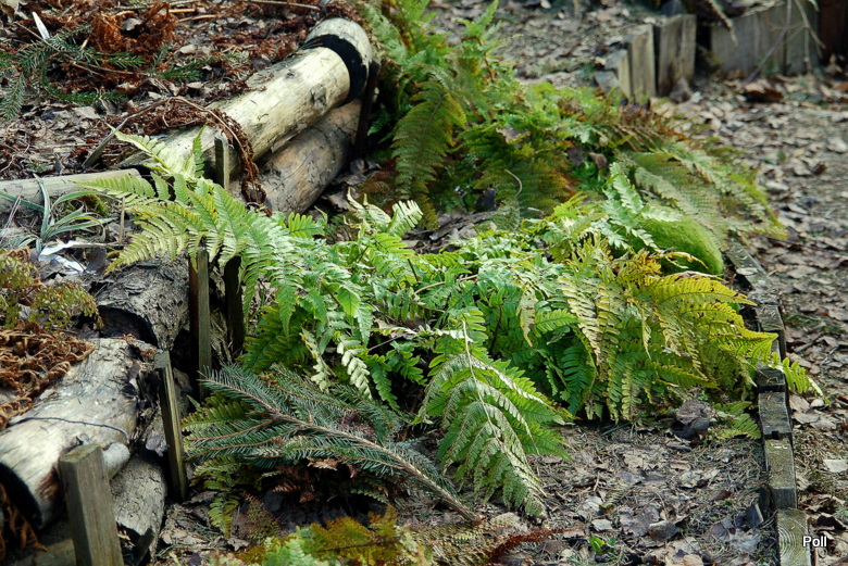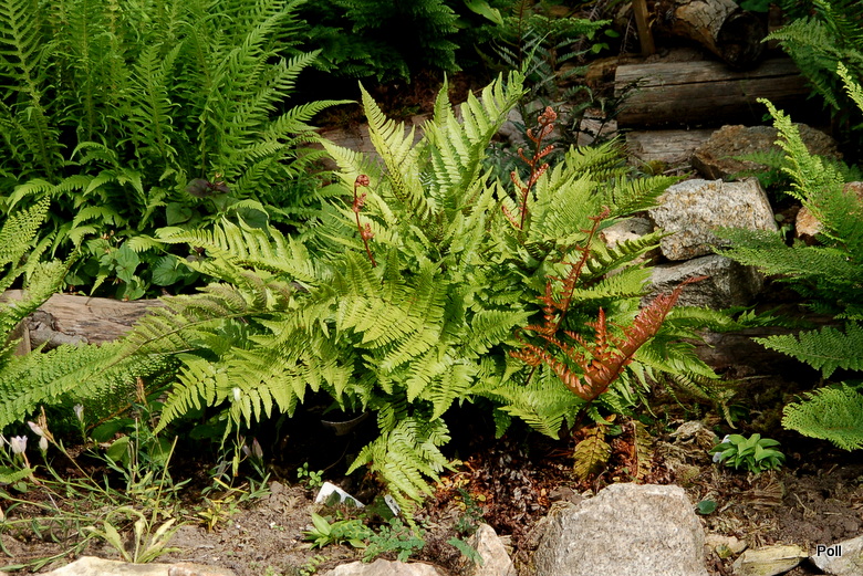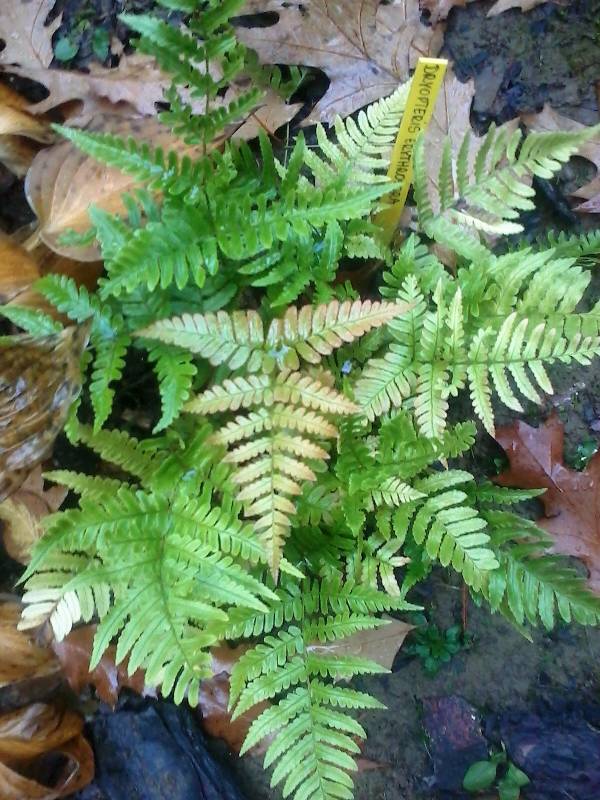 Dryopteris erythrosora na stoku paprociowym ( po prawej