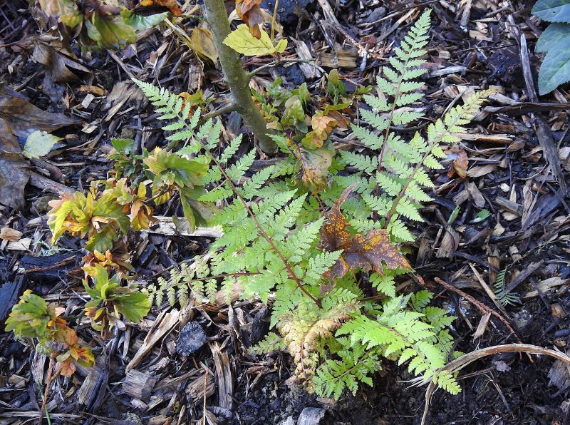 Dwuletnia Athyrium strigillosum pozyskana z rozmnóżki ... po pierwszym, niewielkim przymrozku. Wiosną otrzymała półcieniste, stale wilgotne, ale przepuszczalne stanowisko. Szkoda, że takich miejsc mam coraz mniej w ogrodzie :(
