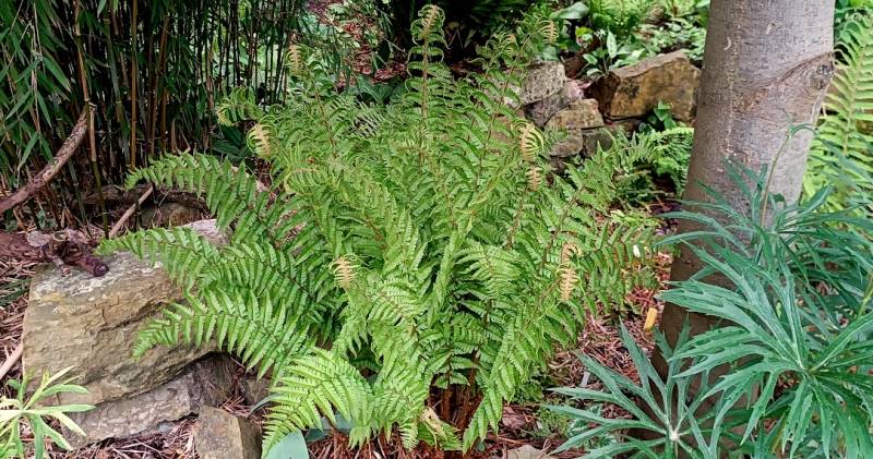 To już pewnie ostatnie zdjęcie w tym sezonie Dryopteris affinis subsp. borrei 'Revolvens'. Po długotrwałych choć niewielkich przymrozkach liście zaczynają żółknąć. Dodam jeszcze, że stanowisko ma wietrzne.