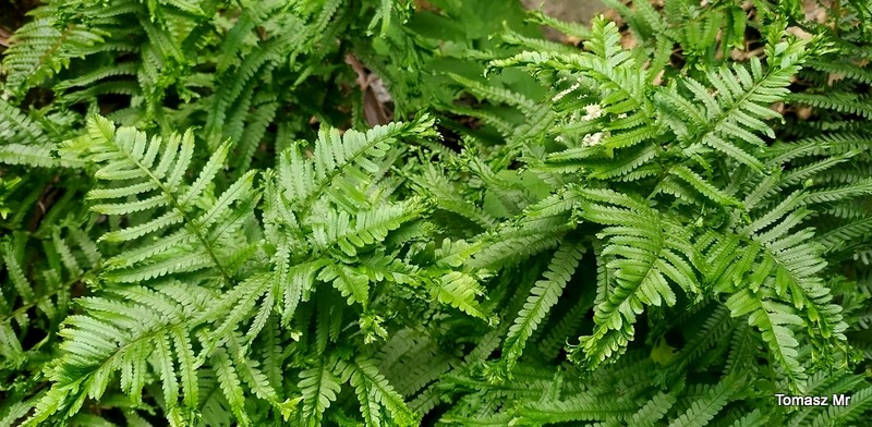 bardzo ciężkimi, rozbudowanymi w kilku płaszczyznach grzebieniami kończącymi każdy liść. Rozszczepienia obserwujemy też na końcach osadek listków, ale są one sporo mniejsze, nie tak dramatyczne i ciężkie. Grzebienie nadają całej kępie nieco dziwną, rozczochraną, ale ciekawą formę, zwłaszcza, że długość frondów dochodzi do