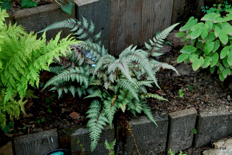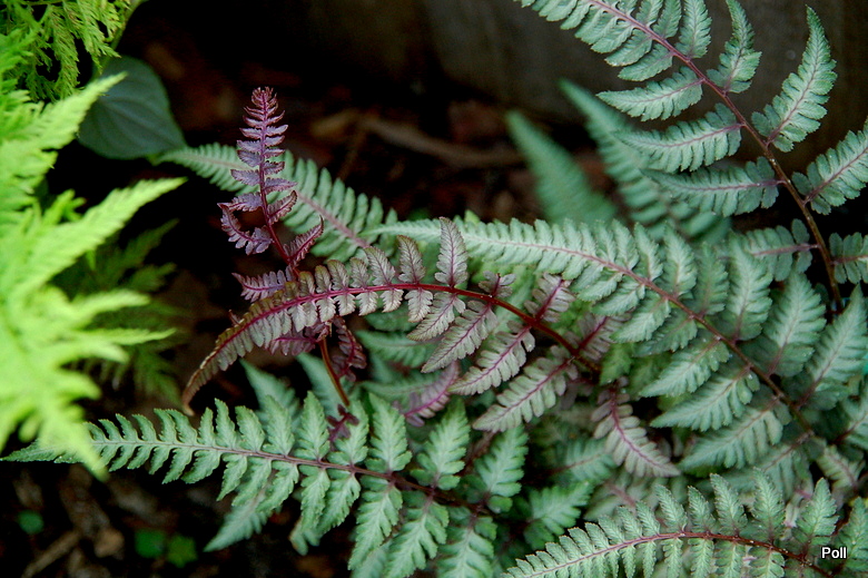 Athyrium niponicum 'Regal Red' ładnie wystartowało w nowy sezon. Ma troszkę zbyt jasne stanowisko, więc nie ma szans na bardzo kontrastowe wybarwienie- do przesadzenia w ciemnicę