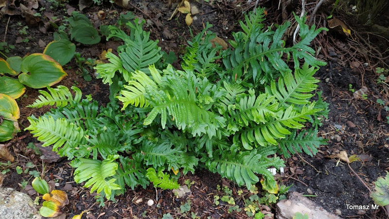 Kiedyś zakupiłem tak małą sadzonkę, że nie przetrwała zimy. Teraz drugie podejście, Dostałem od Poli dorodną roślinę, która zdobiła część rabaty z paprotkami na wystawie w Wojsławicach.