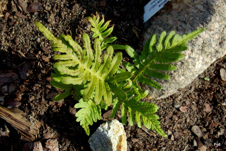 Polypodium cambricum, dość późno rozpoczyna sezon wegetacyjny, czasem nawet dopiero w sierpniu. Nie warto więc zbyt wcześnie martwić się, że paprotki zwyczajne już mają gęste liście a ona jeszcze nie pokazała wcale pastorałów.