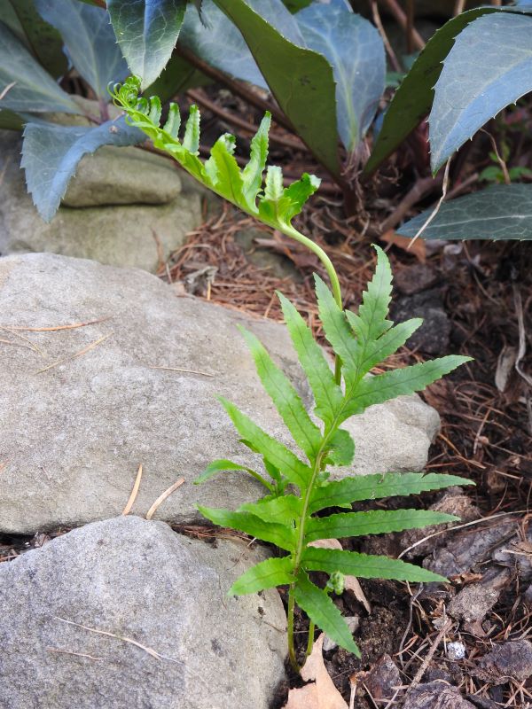 W tym sezonie, Polypodium cambricum 'Falcatum O'Kelly' sporo wcześniej rozpoczęła wegetację, niż zazwyczaj- zapewne z powodu bardzo wczesnej wiosny i panujących wysokich temperatur. Już w tej chwili na spodzie liści widać dojrzałe zarodnie
