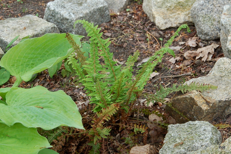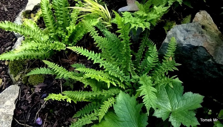 Polystichum setiferum 'Wakeleyanum' wiosną i w sezonie