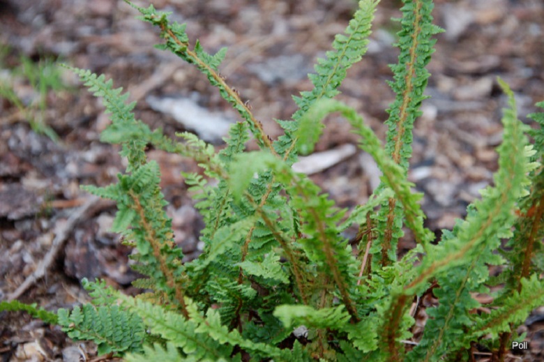 Polystichum setiferum 'Wakeleyanum'', o pierwsza znana forma paprotnika, którego listki rozgałęziają się pod szeroko rozbieżnymi kątami, tworząc krzyże.
