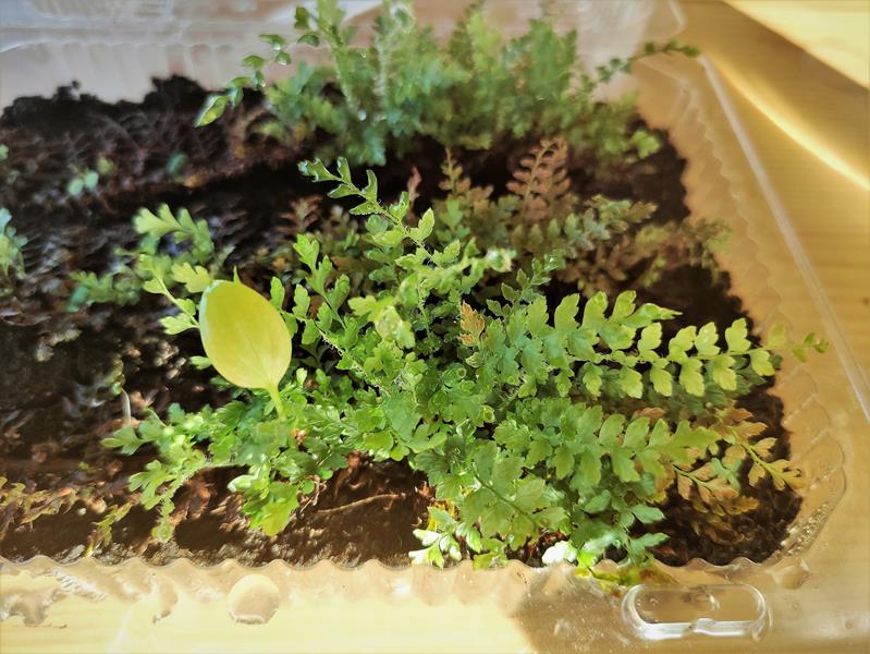 Jesienią przyszpiliłam liście w plastikowym, przeźroczystym pojemniku. Rozmnóżki dość szybko się ukorzeniły i fajnie przyrosły.