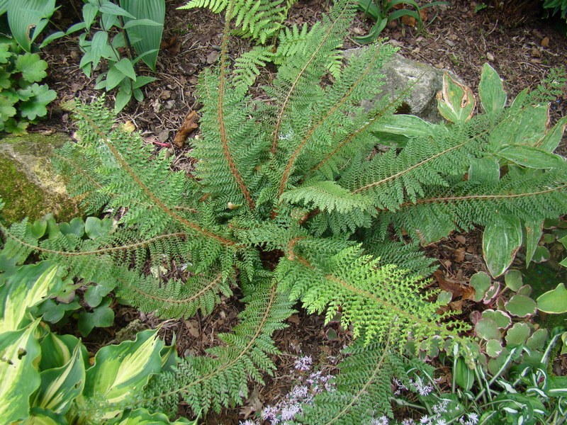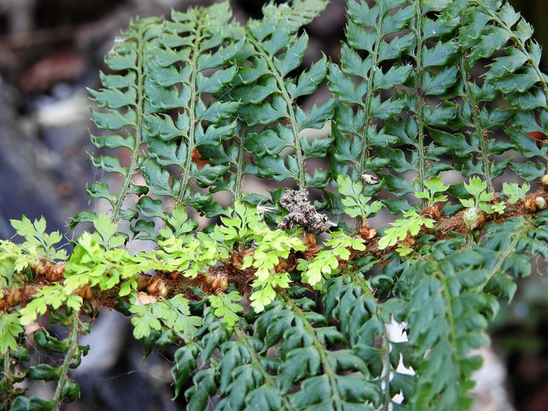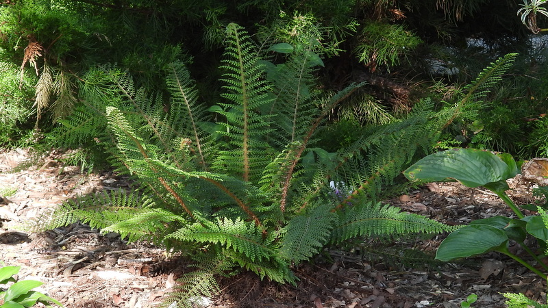 Młody paprotnik 'Proliferum Gracile' trafił wiosną na częściowo zacienione stanowisko. Niewielka sadzonka sporo przyrosła, zwłaszcza gdy się ochłodziło i popadało.