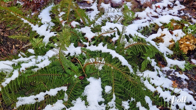 Polystichum setiferum 'Proliferum Gracile' poległ pod niedużą warstwą ciężkiego, mokrego śniegu: