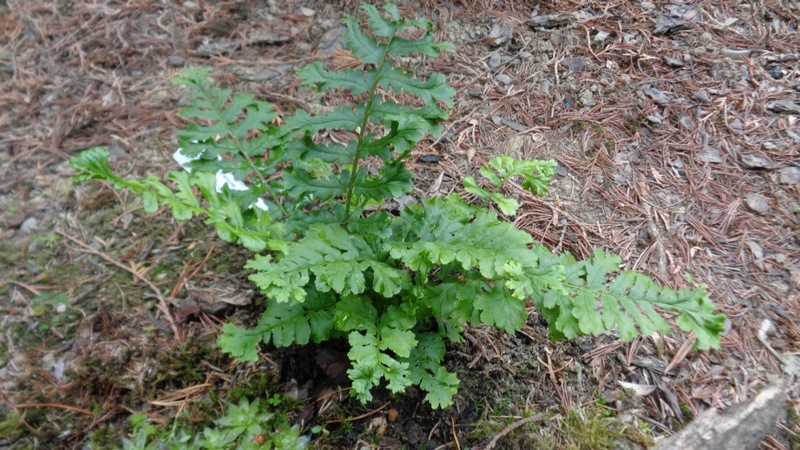 Dryopteris filix-mas 'Cristata Jackson' na półcienistym, wilgotnym stanowisku