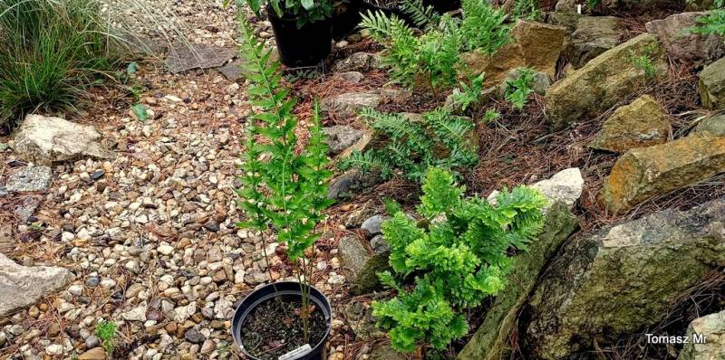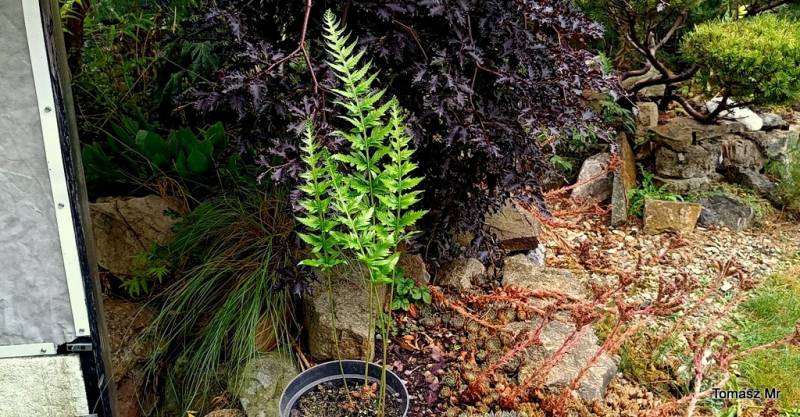 Paprotka walijska 'Carew Lane' późno, bo w lipcu wypuszcza pierwsze pastorały i rozwija z nich liście (fot.13.07.)