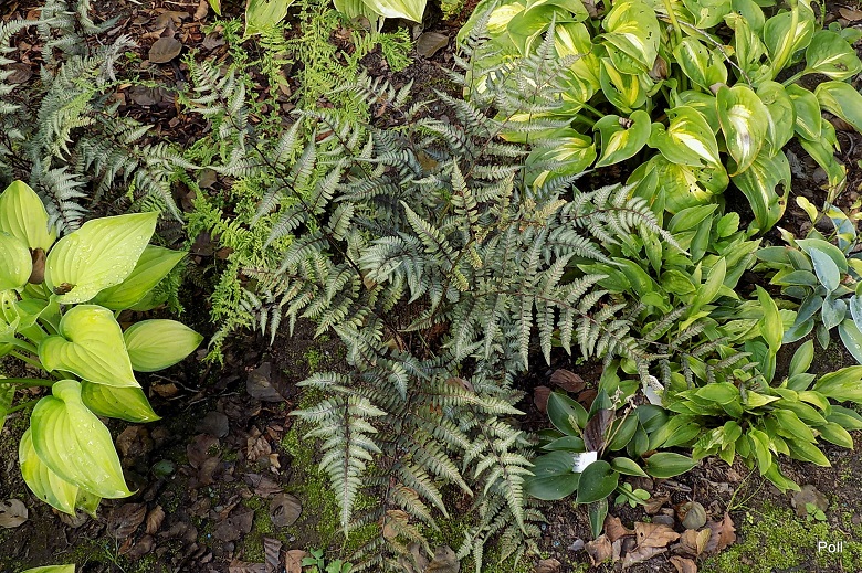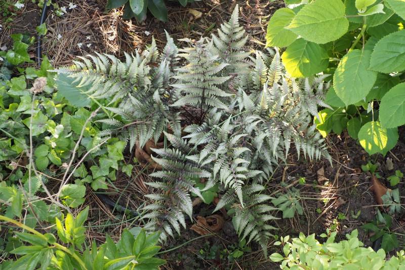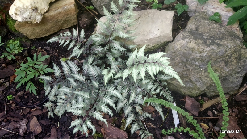 Moja Athyrium niponicum ''Godzilla' także niczym specjalnym - póki co - się nie wyróznia... Ani wybarwieniem, ani wzrostem, choc dostała bardzo dobrą, wigotną miejscówkę. Poczekamy więc jeszcze z dwa lata i wtedy zobaczymy, czy faktycznie ma pałera w genach
