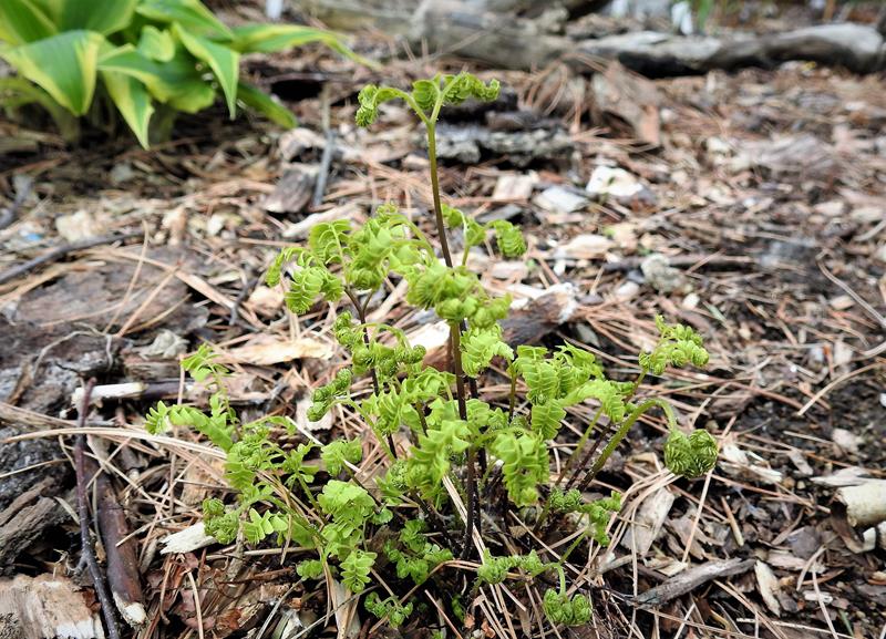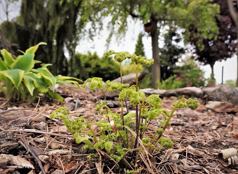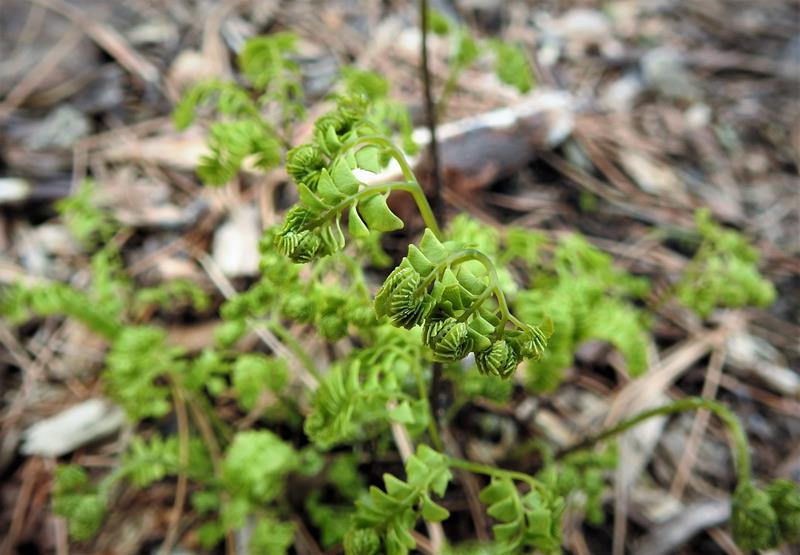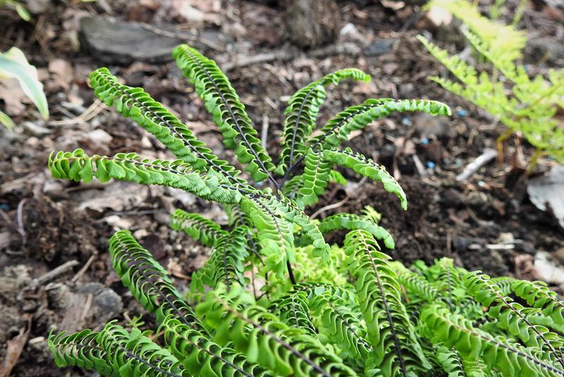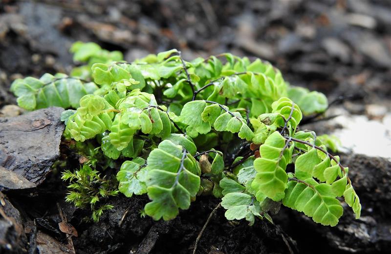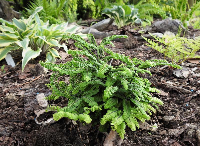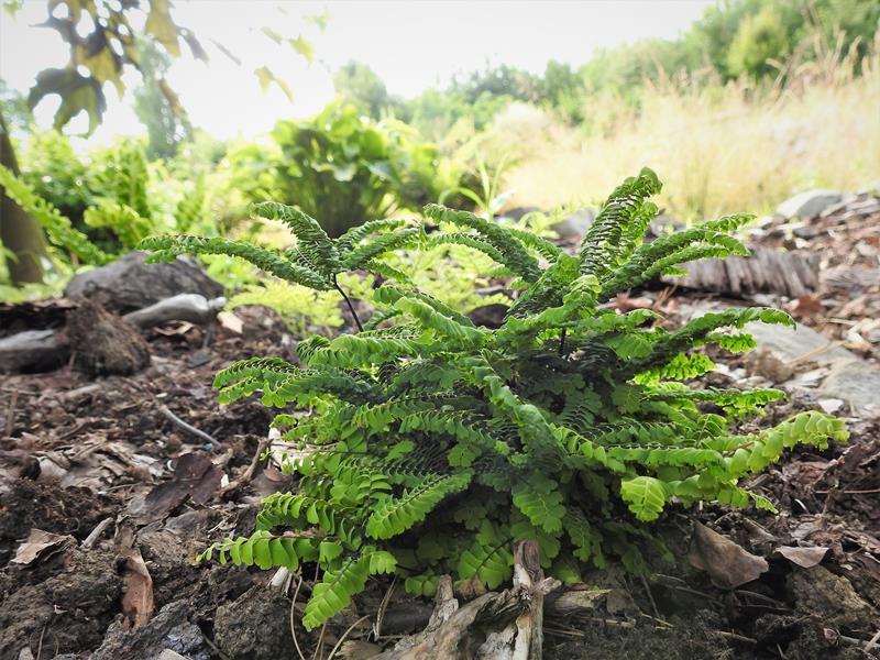 Adiantum aleuticum 'Subpumilum', to niewielka roślina z podziału, drugi sezon w ogrodzie/ zdjęcie wiosenne