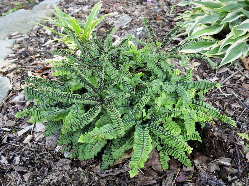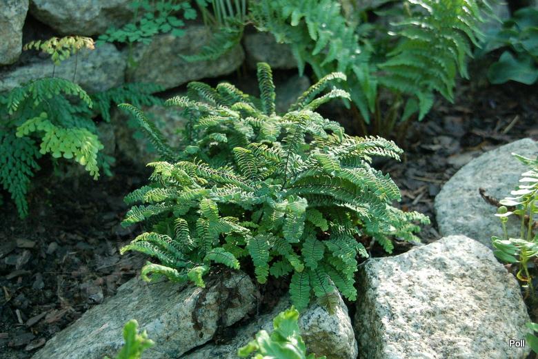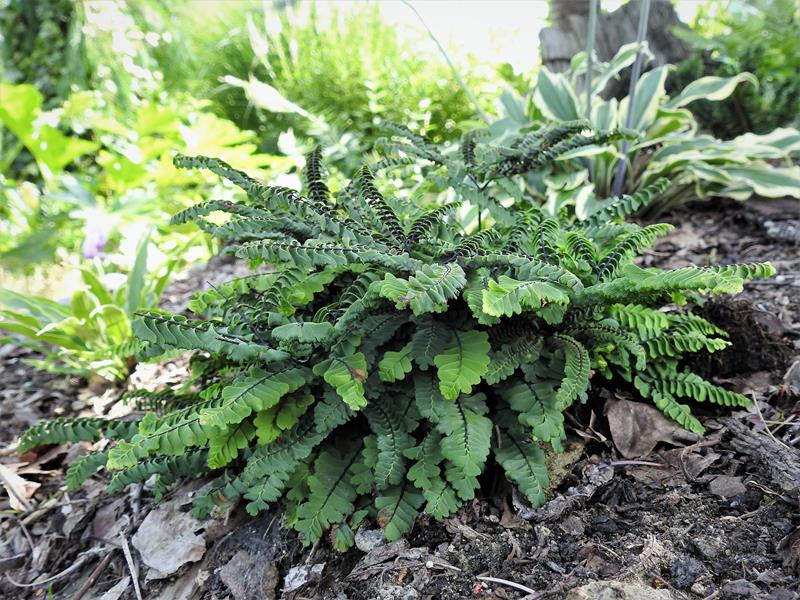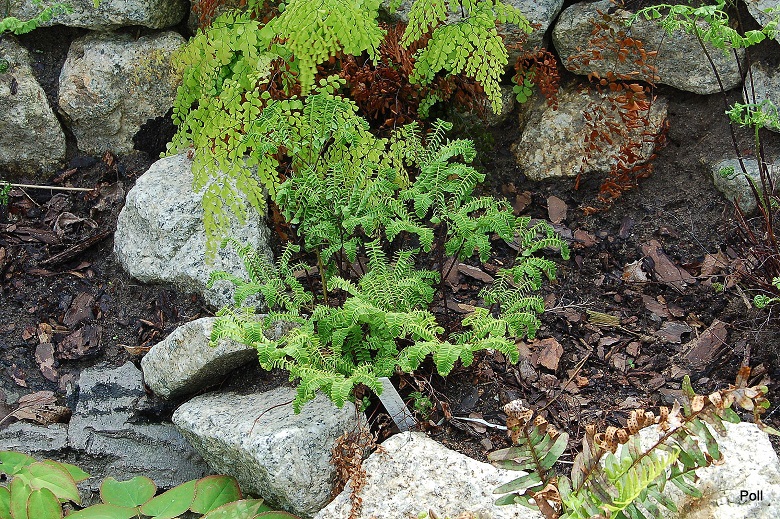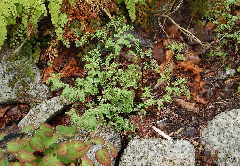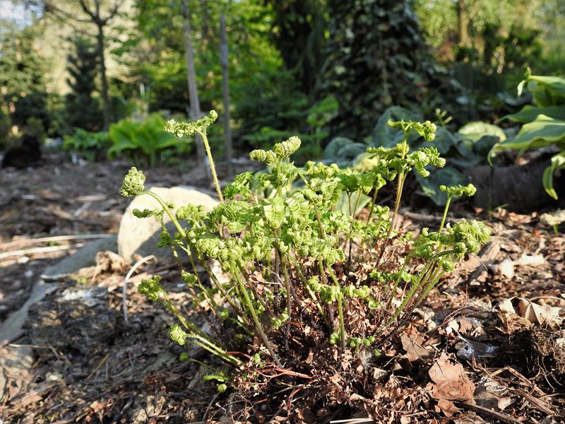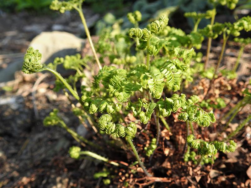 Adiantum aleuticum 'Subpumilum', to niewielka roślina z podziału, drugi sezon w ogrodzie/ zdjęcie wiosenne