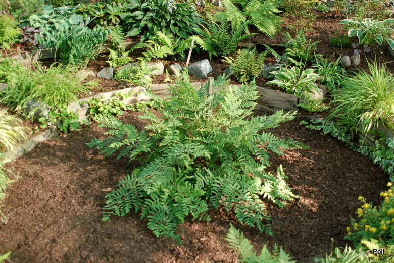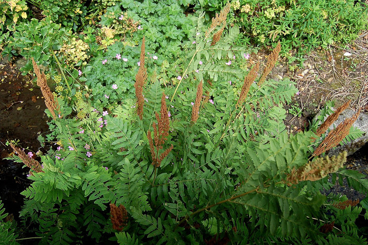 W ogrodzie Neila Timma - Ferns Garden (UK). Osmunda regalis rośnie nad strumykiem w stale mokrej ziemi, na słonecznym stanowisku.