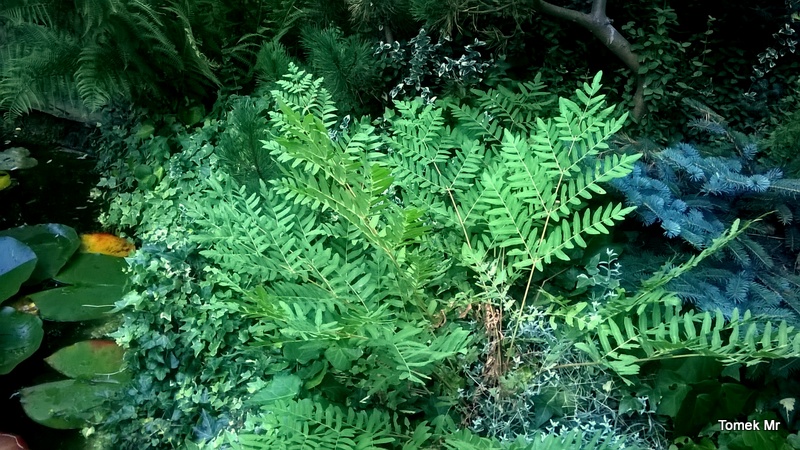 W tym sezonie, Osmunda regalis var. spectabilis dostał nowe, bardzo wilgotne i dośćsłoneczne miejsce. Jak widać, bardzo mu słuzy to stanowisko i mimo upalnego lata wygląda świetnie. Ciągle wypuszcza nowe liście.