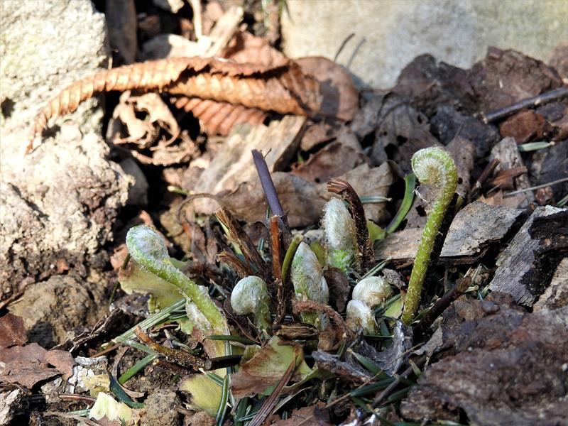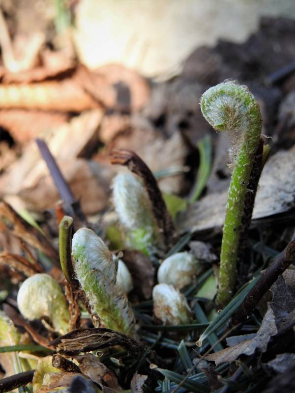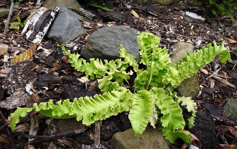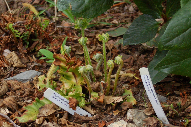 Asplenium scolopendrium 'Golden Queen' wiosną