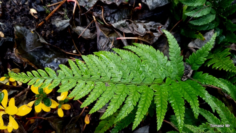 Liście lancetowate, w kolorze ciemnej zieleni dodatkowo z lekkim połyskiem. Paproć przypomina gatunek
