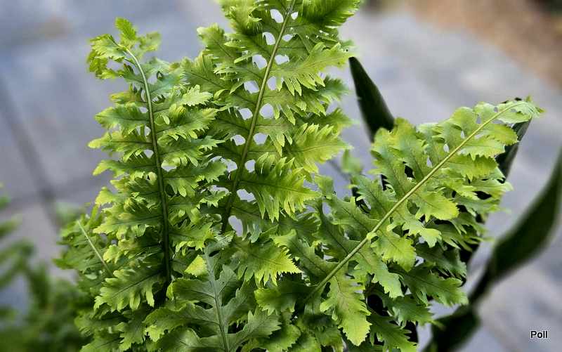 Cyrtomium (gospodynie domowe powiedziałyby, że także lubczyku), ale są lekko pofalowane, lekko koronkowe i ozdobne. Wiosną jasnozielone, w trakcie sezonu ciemnieją i tworzą wzniesione, lekko odchylone na zewnątrz kępy. Jest paprotką zimozieloną, ale kiedy pojawiają się nowe liście (w VI/VII) zaleca się usuwanie starych, które przetrwały zimę dla podniesienia atrakcyjności wyglądu rośliny.