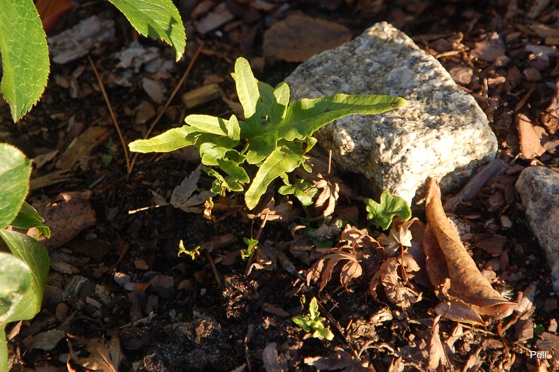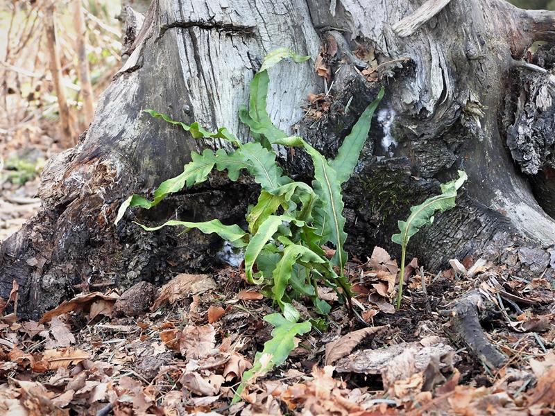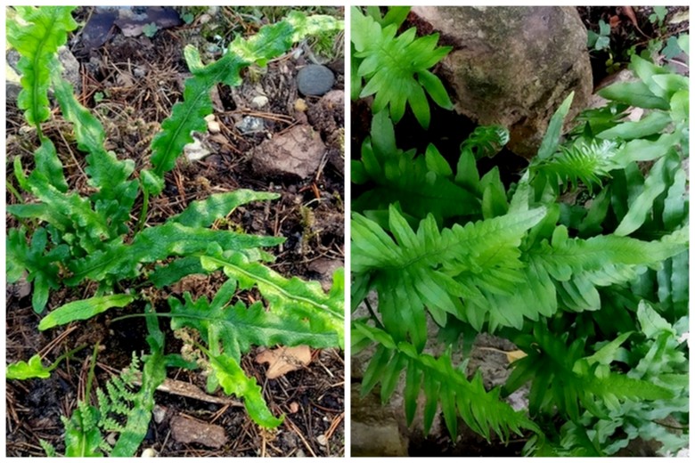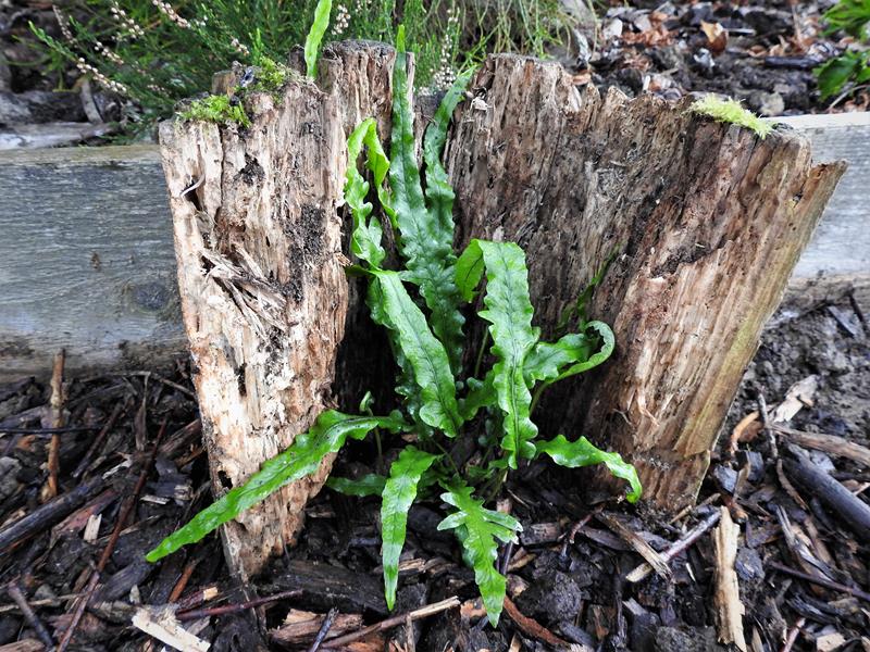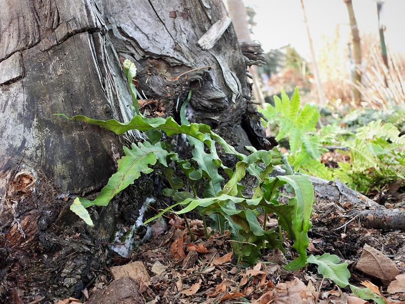 Wczoraj zdjęłam okrywające ją gałęzie iglaste i mogłam porównać z innymi roślinami, jak jest trwała. Ponieważ rośnie na szczelinowcu z kilkoma innymi Polypodium, oraz odmianami języczników zwyczajnych, najprościej było mi porównać właśnie z nimi, gdyż mają dokładnie to samo stanowisko.