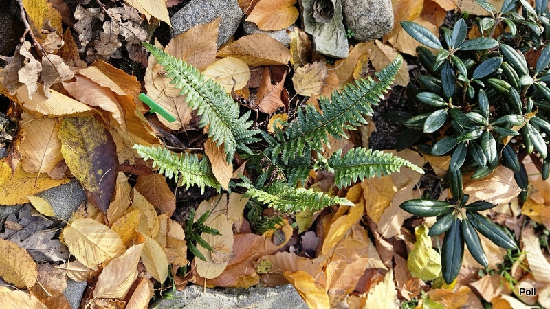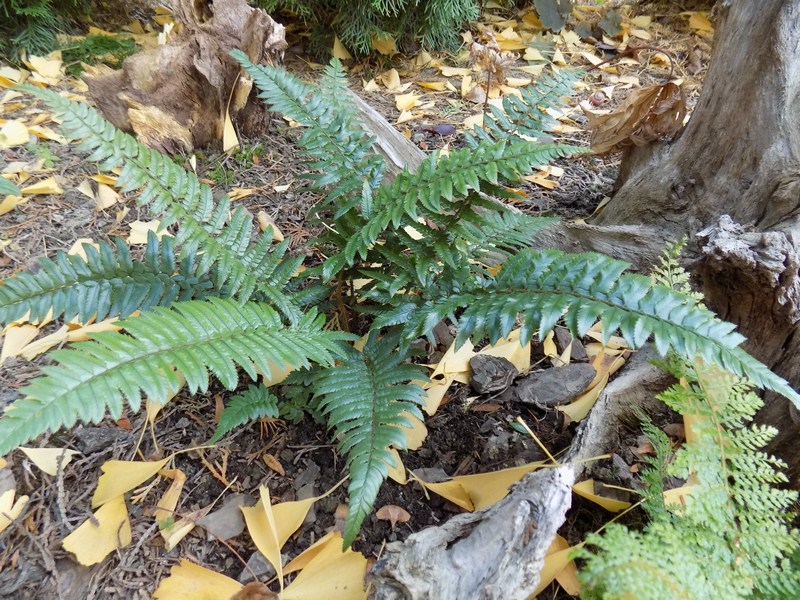 Polystichum xiphophyllum, mimo późnej pory, w nienagannym stanie.
