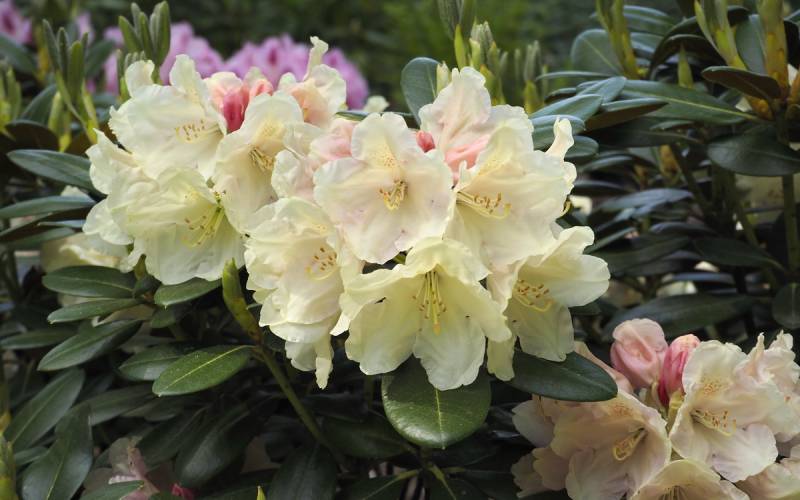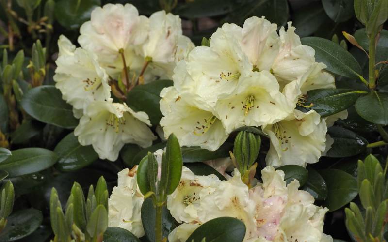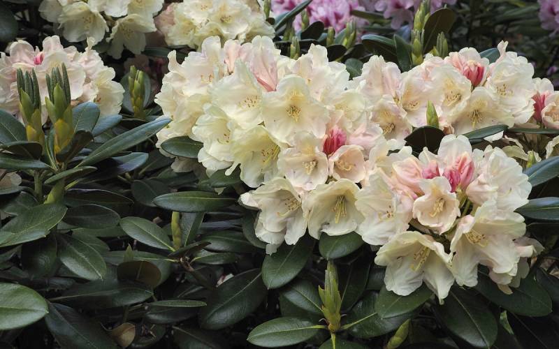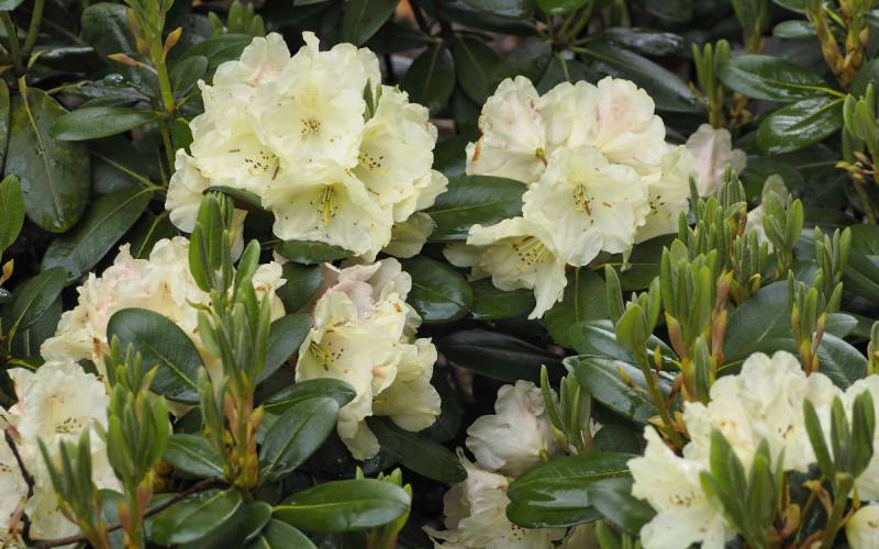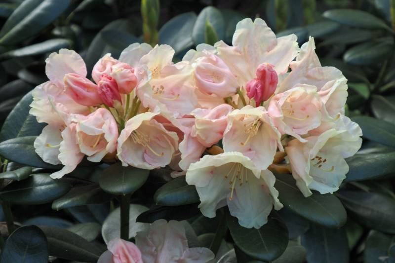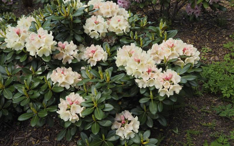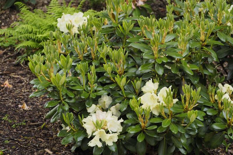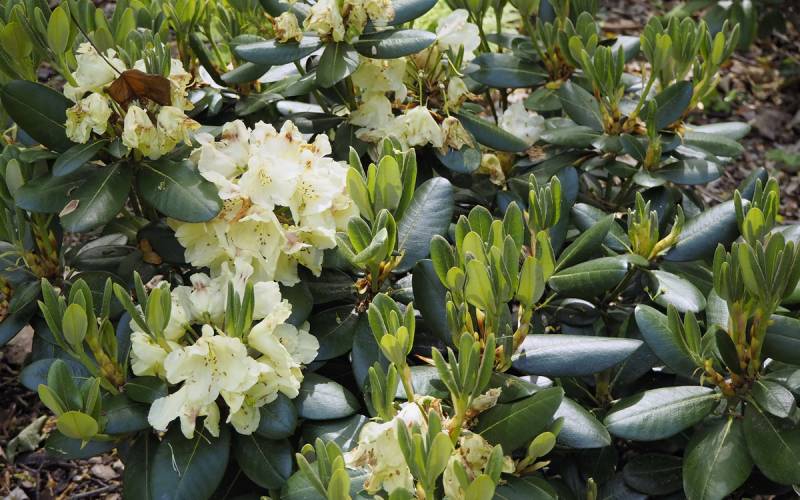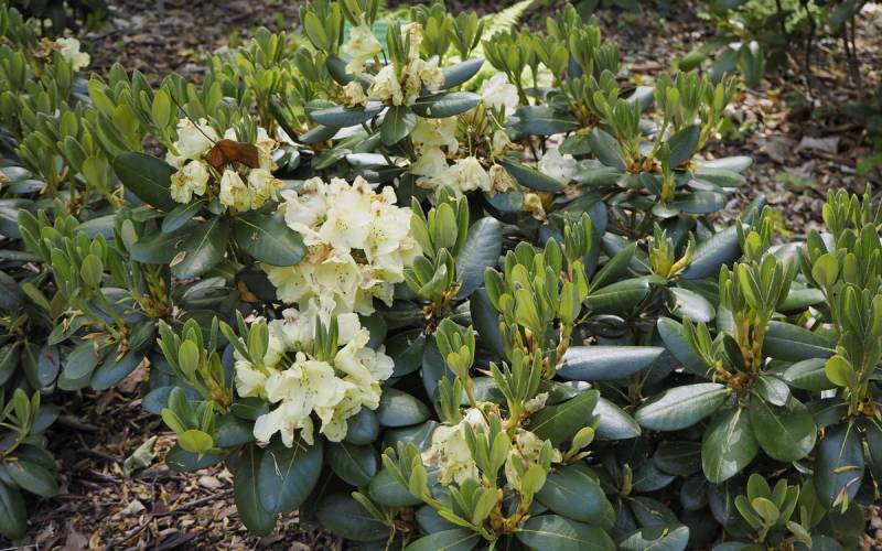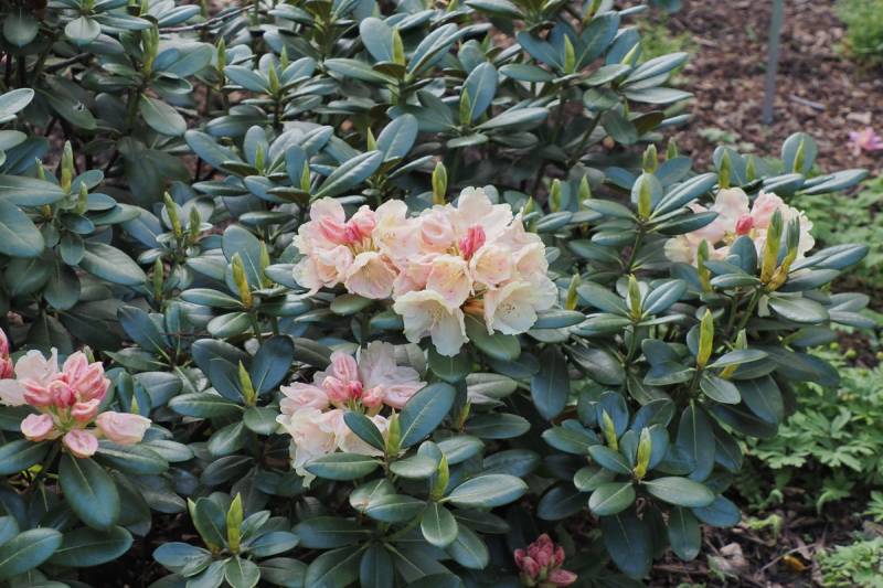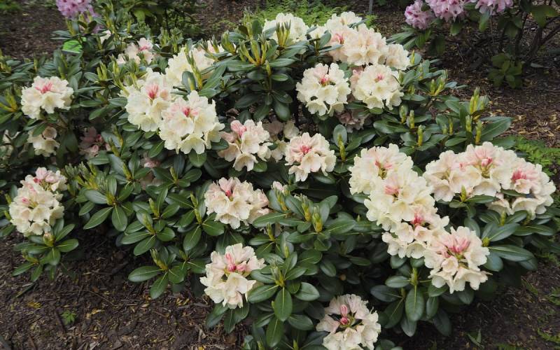 Selekcjoner: S. Cok, Niemcy (wprowadzenie do handlu: 2011) Pokrój: płaskokulisty Siła wzrostu: roślina bardzo wolnorosnąca... po 10 latach dorasta do około 0,50 m wysokości Liście: ciemnozielone, błyszczące... eliptyczne Kwiaty: w pąku jasnoróżowe, po otwarciu kremowo białe z nielicznymi żółtawymi cętkami na górnym płatku... lejkowate... zebrane po kilkanaście sztuk w wierzchołkowe, niemal kuliste kwiatostany Termin kwitnienia: połowa maja Mrozoodporność: do -22/ -24 °C (Ciepłucha)