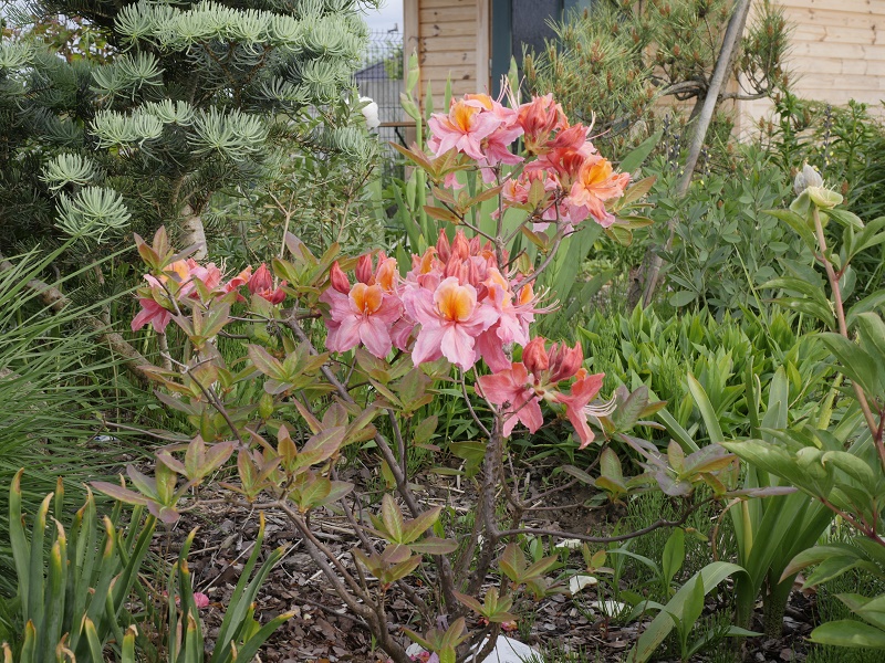 Po posadzeniu w 2021 roku azalia Pinokio wyglądała koszmarnie, była cała w mączniaku i bardzo słabo zawiązała pąki. W rezultacie kwitnienie też nie było imponujące...