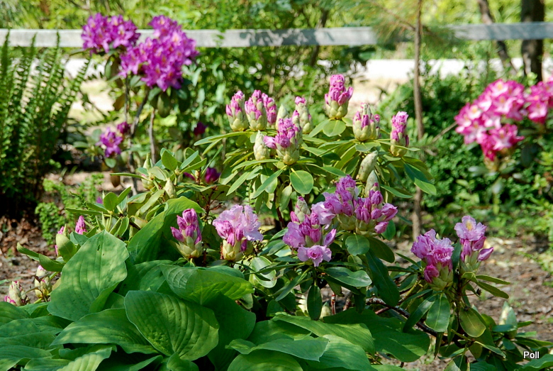 "Przyznam,ze w tym roku nie nasyciłam się różanecznikami, choć jeszcze nie wszystkie kwitly. Burze na przemian z palącym słońcem i upałami podziałały i kwiaty szybko zbrązowiały i opadły. Zdążyłam troszkę pofocić, aby mieć co wstawiać do baz, ale czuję pewien niedosyt. Teraz własnie rozpoczyna kwitnienie sztandarowy Rh Wojsławic Von Oheimb Woislowitz".Przepraszam za jakośc zdjęcia, dopiero 'ustawialismy' forum, więc zdjęcia nie wchodziły najlepszej jakości i wielkości.