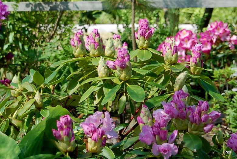'Von Oheimb Woislowitz' rozpoczyna kwitnienie, jako jeden z ostatnich różaneczników. Jeszcze przed kwitnieniem został zasilony Magiczną Siłą do różaneczników a w ubiegłym roku dostał nawadnianie kropelkowe. Walczę z tym mało nasyconym kolorem liści, teraz, gdy stanowisko zrobiło się pólcieniste i dość wilgotne, mam nadzieję doczekać się efektów tej walki.