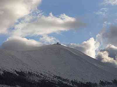 Śnieżka/ Sněžka to najwyższy szczyt Karkonoszy i Sudetów a jednocześnie najwyższa góra w Czechach... ma kształt trójkątnego ostrosłupa i mierzy1603 m... usytuowana na granicy polsko-czeskiej, po stronie polskiej znajduje się na terenie Karkonoskiego Parku Narodowego, po stronie czeskiej na terenie Krkonošského národního parku... oba parki współtworzą przygraniczny