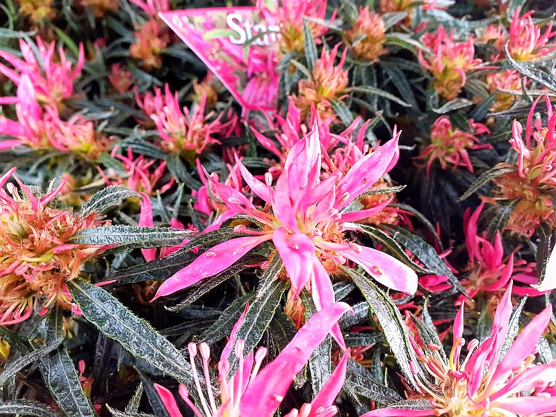 Kwiaty: dostępne w 3 wersjach kolorystycznych: różowej, liliowej oraz białej... zbudowane na kształt gwiazdek z silnie wydłużonych płatków korony, pręcików i słupka... zebrane w kuliste kwiatostany, przypominające fajerwerki