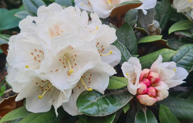bo zdjęcia między innymi tego właśnie egzemplarza, sfoconego na tle krzykliwego 'Kazimierza Odnowiciela', ilustrują 'Bengt's Bear'a' w ofercie ichniego sklepu internetowego Fioletowo... trzeba zatem zaufać... do wiosny... bo wiosną, mam nadzieję, że Leonidas rozstrzygnie wątpliwości kwiatowe... i ustalimy, czy one faktycznie przechodzą od różu do bieli i wyglądają tak, jak na fotach z RODOmanii widać a o czym wszelakie opisy ofkoz milczą