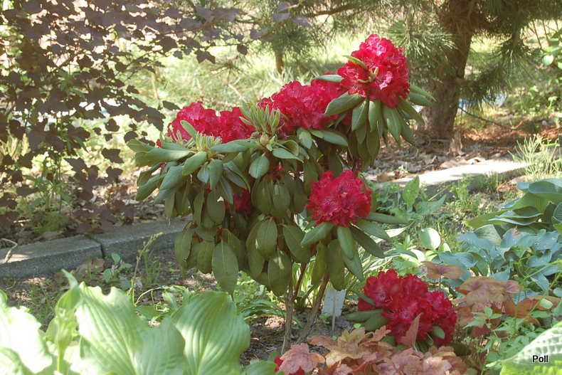 Selekcjoner: Lord Aberconway, Wielka Brytania (wprowadzenie do handlu: 1937) Pokrój: krzaczasty, wyprostowany Siła wzrostu: umiarkowana... po 10 latach dorasta do około 1,50 m wysokości i około 1 m szerokości Liście: ciemnozielone, matowe... o długości do 12,5 cm przy szerokości do 6,5 cm Kwiaty: szkarłatno czerwone, połyskujące, wewnątrz jaśniejsze z zielonkawym rysunkiem... brzegi płatków lekko pofalowane... średnica pojedynczego kwiatu do 9 cm... szeroko lejkowate... zebrane po 15-16 sztuk w wierzchołkowe kwiatostany Termin kwitnienia: połowa maja Mrozoodporność: do -18 °C (ZSP)