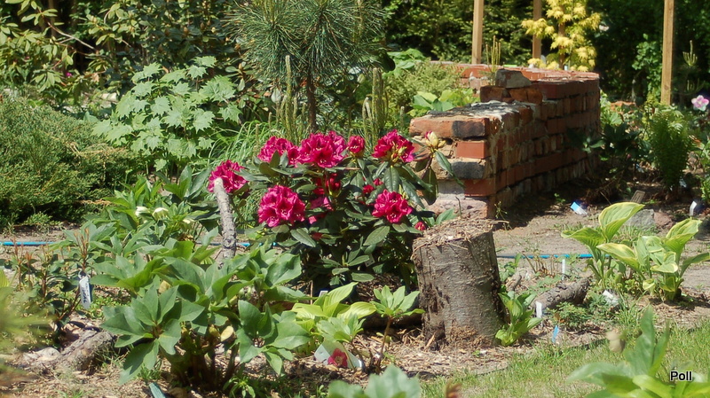Zakwitł rododendron 'Sigismund Rucker', który nieźle daje po oczach