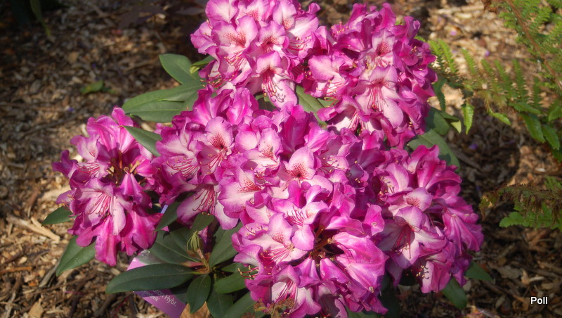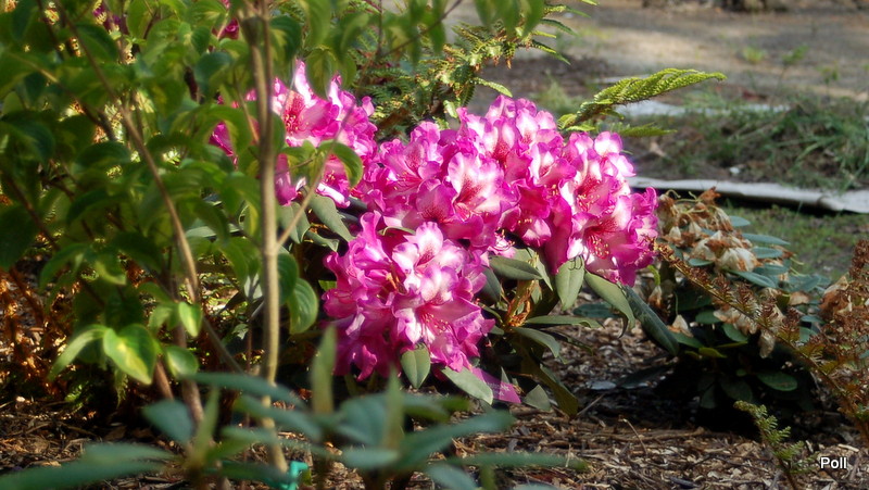 Rhododendron 'Kronprins Frederik, ale gdy zrzuciłam zdjęcia na lapka, okazało się, że zachodzące słońce wyróżowiło barwy na ostrą landrynę