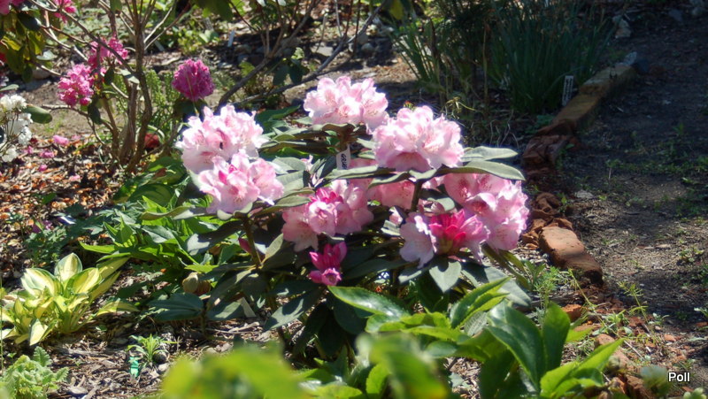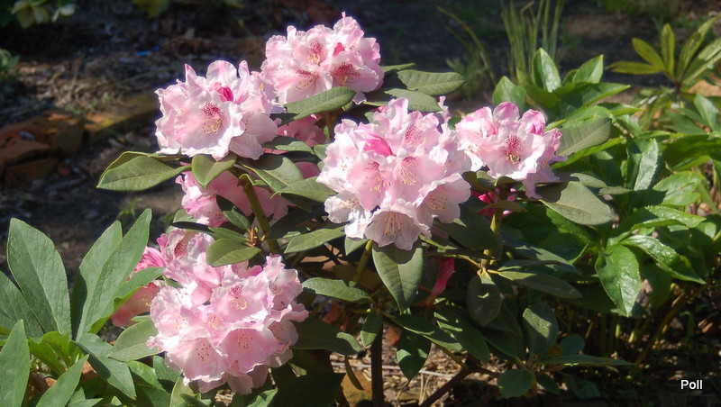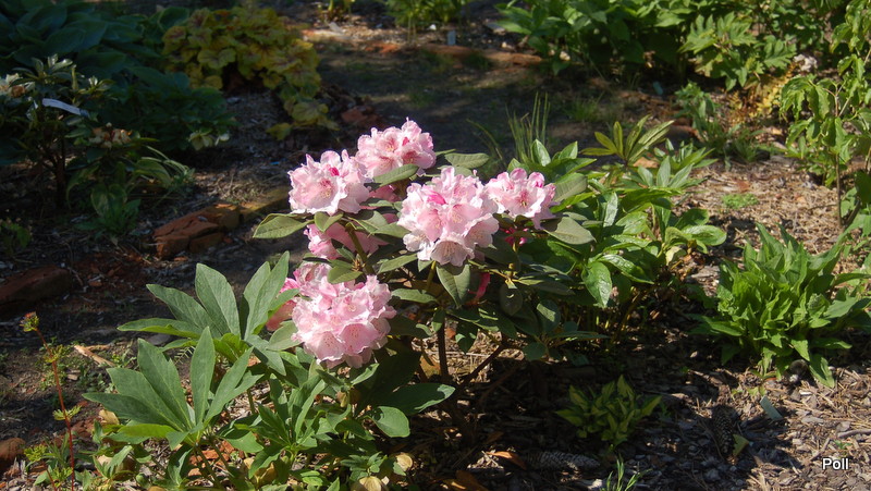 Rhododendron 'Grugaperle' rośnie na mocno słonecznym stanowisku, ale jeśli będzie źle znosił takie miejsce, przesadzę w półcień.