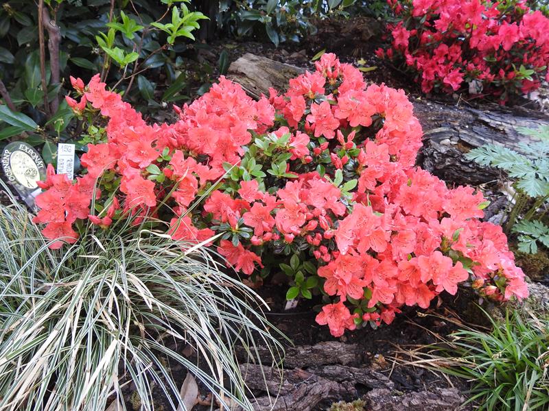 Po kilku dniach Geisha Orange żarówi się na hostowisku. Kwitnie, jako pierwsza z azalii japońskich.