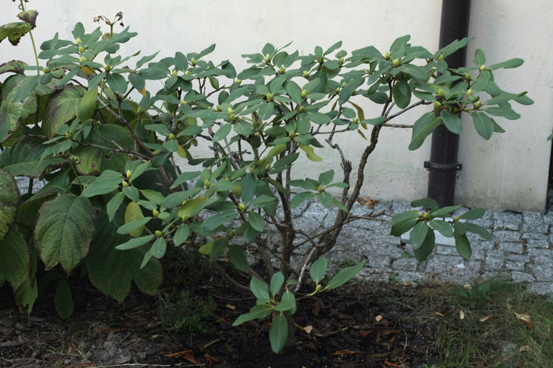 Liście: ciemnozielone, z wierzchu błyszczące... młode brązowawe... duże, o długości od 9 do 16 cm... na brzegach lekko pofalowane